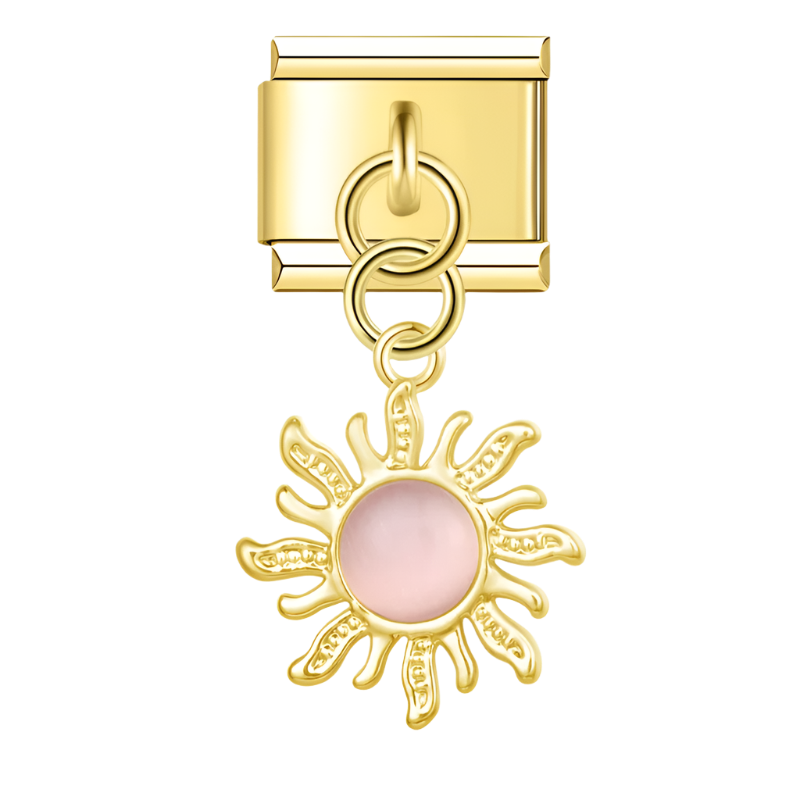 Golden Sun with Pink Resin Gem - Gold Pendant Charm